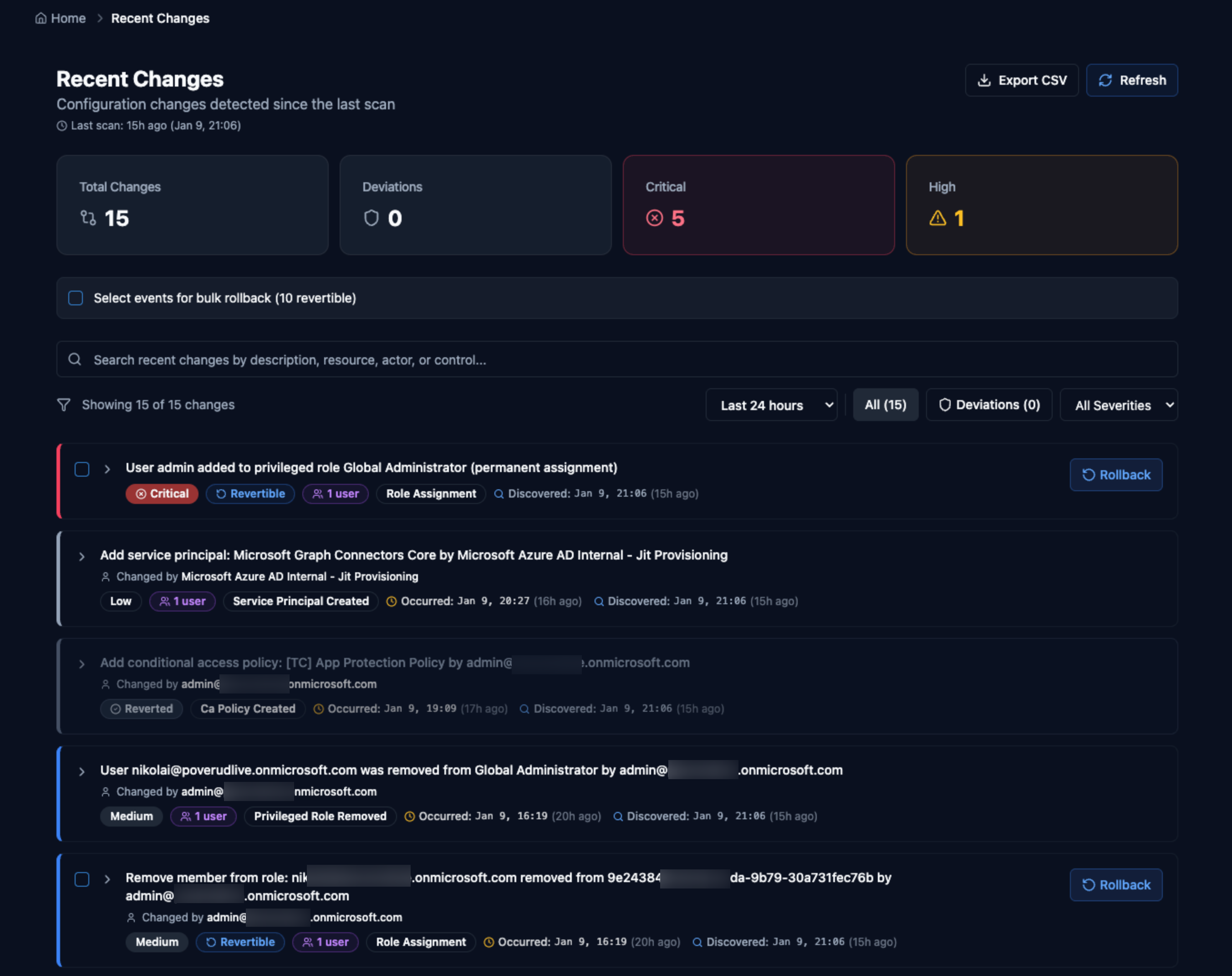 Revert multiple drift events at once to quickly restore your tenant to a known-good state. Essential for incident response.